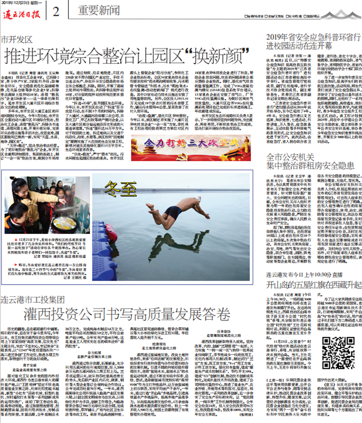 12月23日連云港日報刊登灌西書寫高質量發展答卷