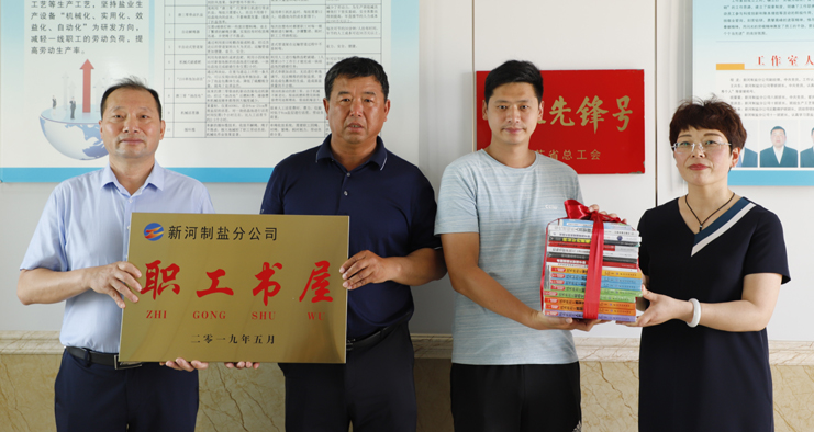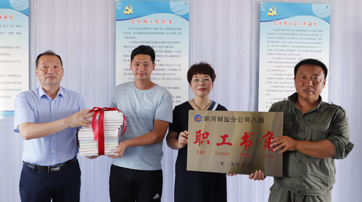 為鼓勵和支持員工不斷更新知識,激發(fā)員工自我學習的能力,提升班組核心競爭力,7月2日上午,灌西公司黨委書記、董事長、總經理李國文,黨委副書記、紀委書記、工會主席王宏為日曬制鹽班組贈送圖書并授牌。