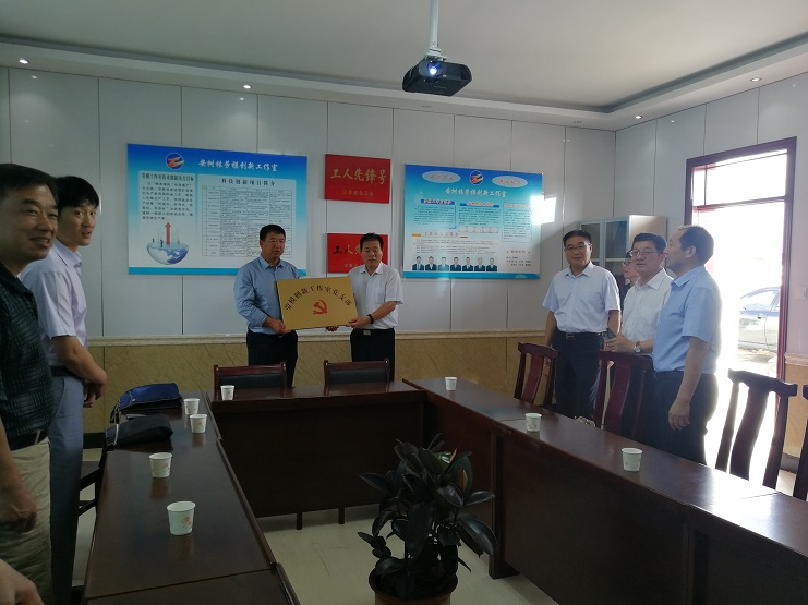 7月11日下午市總工會黨組書記丁維杰一行來安樹林勞模創新工作室蒞臨指導,集團公司工會主席劉承志,投資公司黨委書記、董事長、總經理李國文,紀委書記、工會主席等陪同指導。