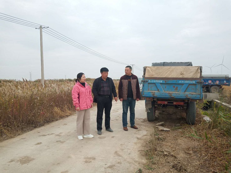 在明威公司外包種植戶秋收現(xiàn)場(chǎng),趙莉莉?qū)嵉夭榭?/span>秋收進(jìn)度,了解各種植戶秋收作業(yè)情況。認(rèn)真詢問糧食產(chǎn)量情況,并與種植戶交談,仔細(xì)詢問秋收中遇到的困難和問題。